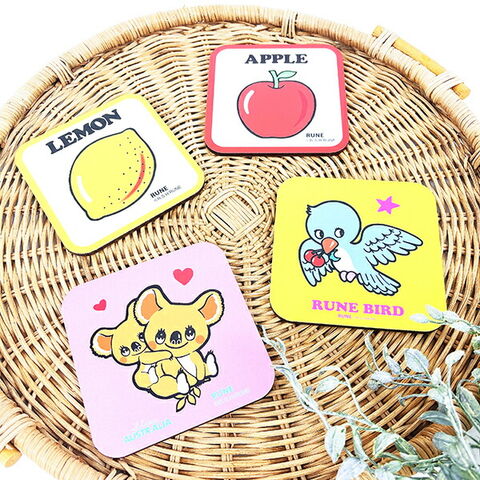 かわいいデザインの内藤ルネのコースターです♪食卓にかわいいデザインでテーブルが結露でびちゃびちゃになるのを防いでくれます♪お客様にもちろんお料理、SNSにも◎パソコンデスクまわりで水分を避けたい場面でもいかかでしょうか♪