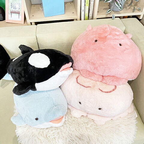 海中散歩から【もちだっこクッション】です♪メンダコ、クラゲ、シャチ、イルカの全4種◎ふわふわでもっちりなクッションなのでお部屋に飾っておいても可愛いくリラックスタイムにぎゅっと抱っこすれば癒されること間違いなし♪プレゼントにもオススメです◎