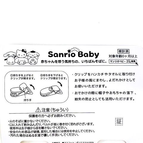 クリップをハンカチやタオルに取りつけてお子様の肩にまわし、よだれ掛けとしてお使いいただけます。おでかけの際に帽子やおもちゃの落下防止にもとても便利です♪【サイズ】キャラクターフェイス部分:約6cm / クリップからクリップまでの長さ:約34cm