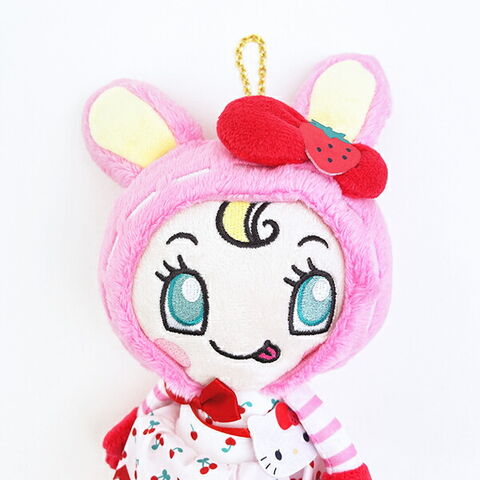 キッズブランド「メゾピアノ」とキティちゃんのコラボマスコットです。こちらはペリエちゃん。さくらんぼやいちごのカワイイモチーフが詰まったデザインにキティちゃんのポシェットを持っているのがポイント♪チェーンが付いているのでバッグに付けやすい!お尻にビーンズが詰まっているので自分で座ってくれるのも嬉しい!!
