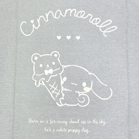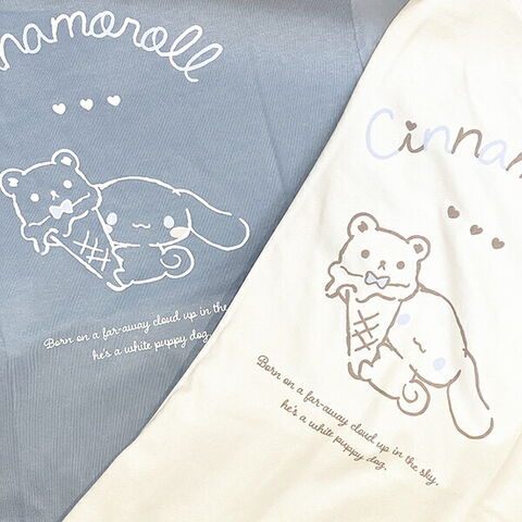 シナモロールが持っているくまアイスのデザインがかわいいTシャツです。くすみカラーで合わせやすく、普段着としても使いやすい!大人かわいいアイテムでお友達とお揃いやルームウエアとしてもおすすめ☆