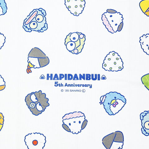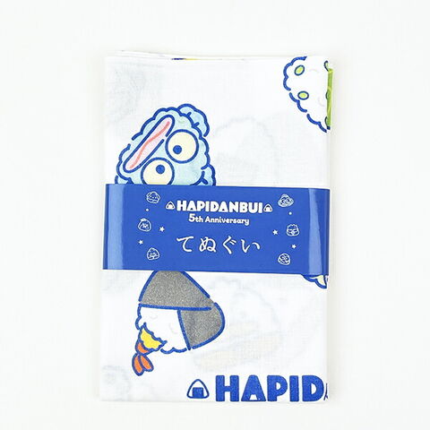 はぴたんぶいの5周年デザインが可愛い手ぬぐいです。綿100%日本製の手ぬぐいです。使っていくうちに柔らかく生地が変化していきます。はぴたんぶいたちがおにぎりになったデザインがとっても可愛いです♪ぜひ周年のお祝いにいかがですか?
