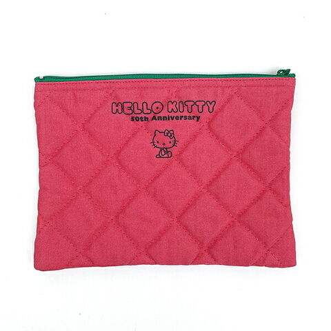 50周年を記念したハローキティのキルティングポーチです♪コスメや小物入れに!コンパクトな見かけによらずたっぷり収納可能◎キルティングバッグと同じデザインなので揃えてもかわいい♪