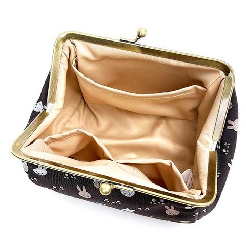 ミッフィーのジャガードがま口ポーチ。内側に両サイド大1、小2のポケット付きなので収納しやすい!!