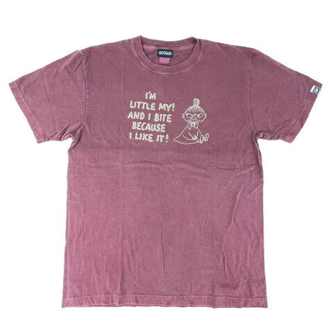 リトルミイの顔料を使って生地を染める加工のTシャツです。繊維の奥まで浸透させず表面のみに色をのせているため新品ながら古着のような風合いに仕上がります。とてもオシャレな色合いなのでどんなコーディネートにも合わせやすく、1枚で主役級のアイテムです☆【サイズ】身丈:79cm×身幅:57cm