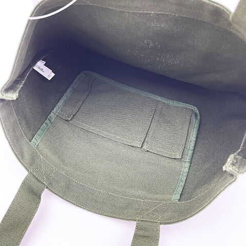 シンプルでシックなカラーが素敵な、ヘヴィーキャンバストートバッグです。内側には仕切り付きのポケットがあり、小物の収納に便利。丈夫な生地でたっぷり入るサイズ感なので、普段使いやお出かけにもぴったりです。