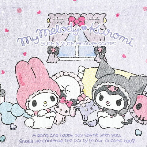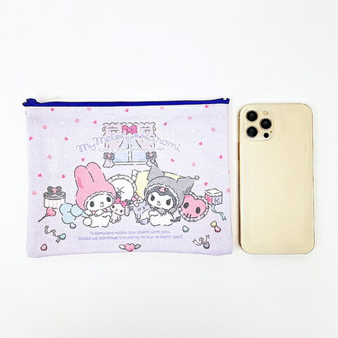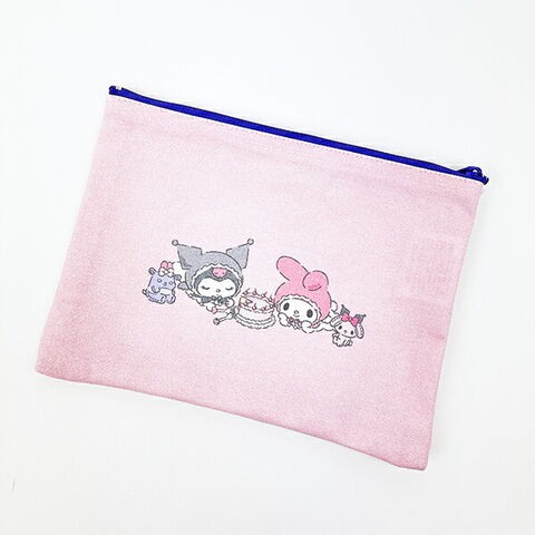 マイメロとクロミの Anniversariesデザインのフラットポーチです♪小物入れやちょっとしたコスメポーチとしてもお使いいただけます♪推し活用の缶バッジや写真入れにもOK◎