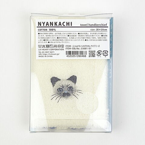 にゃんかち サイアミーズ ハンカチタオル ホワイト