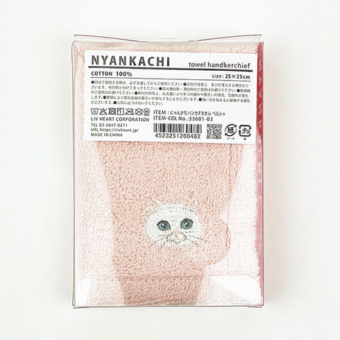 にゃんかち ペルシャ ハンカチタオル ピンク