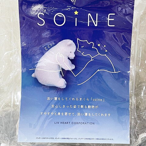 添い寝をしてくれるまくら「soine」のレムです。安心しきった姿で眠る動物がすやすやと身を寄せて添い寝をしてくれます!手洗いOKで清潔に使えるのが嬉しいポイント☆安心する表情に癒されませんか?
