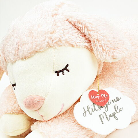 ひつじのメイプル(サクラ)の寝そべり抱きまくらです。メイプルはいつもみんなのことを考えているやさしいひつじさんです。誰かが寂しい思いをしていると放っておけずそっとそばにいてくれます。伸縮性のあるボア生地と羽毛みたいに柔らかい綿で極上の手触り☆ふわふわで癒されます♪メイ・ロップ・サクラの3匹いるので、ぜひお気に入りの子をお迎えしてあげてください☆