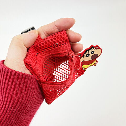 ちょっとした小物を入れてバッグにつけられるクレヨンしんちゃんのメッシュポーチです。 チラッと覗いてる姿が可愛い! リール付きなのでお好きなカバンやリュックに付けてお出かけしませんか♪