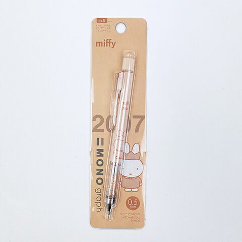 ミッフィーの回転くり出し式の「MONO消しゴム」を搭載したシャープペンシルです。ミッフィーは誕生70周年!年代別のミッフィーがそれぞれワンポイントに♪ミッフィーらしいシンプルなデザインで大人可愛いカラーリングなので、年代問わず持ちやすい☆お勉強やお仕事のお供に◎【芯径:0.5mm】