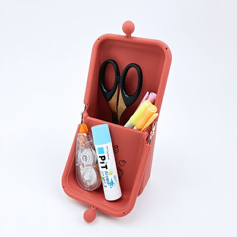 サンリオのシリコーン製の縦型がま口ペンケースです♪ハローキティのイラスト入り◎表側だけでなく内側にもかわいいイラスト◎置くだけでピタッとくっつき倒れない!本体底面の吸盤でピタッとくっつき、空気のチカラでしっかり吸着します(※凹凸のないフラットな面に吸着した場合、垂直方向で3kgの引っ張り強度)。外すときはワンタッチで簡単に外れます。タテにもヨコにもスマホが置ける、大容量でガバッと開くがま口タイプ。シリコン製なので文房具以外に洗面用品や化粧品を入れるのにも便利◎デスク周りや勉強机のごちゃごちゃ感がなくなりスッキリと整理整頓できる♪