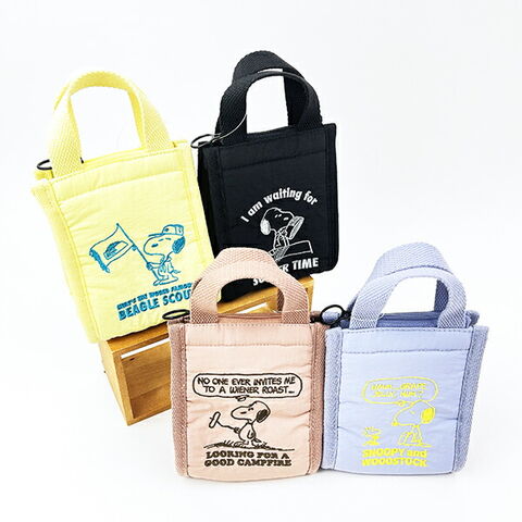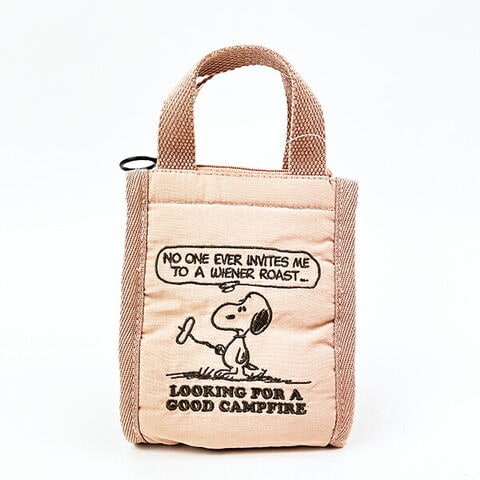 スヌーピーの簡易保冷機能付きルートート「サーモキーパー」のミニトートバッグです。おにぎりやゼリー飲料などを持ち運ぶのにちょうどいいサイズ感☆暑い季節は溶けやすいお菓子やコスメを収納してポーチ代わりにも◎背面にはメッシュポケット付き。洗濯機OKなのでいつでも清潔に!シンプルながらも可愛いスヌーピーデザインに注目です☆※保冷剤を入れてお使いください。※洗濯の際はネットに入れて弱水流で洗ってください。【持ち手:16cm】
