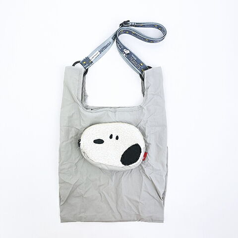 スヌーピーフェイスのポケットがポイントのショッパーバッグです。ショッパー型デザインのトートバッグ。長財布、スマホ、ボトル、A5ノート、ポーチなどが収納可能◎取り外し&長さ調整可能な、両面プリントのショルダーベルト付きなのでシーンに合わせて、手持ち・肩掛け・斜め掛けと使い分けができて便利♪真ん中のおすましフェイスのポケットがキュート☆使わないときは、このポケットをひっくり返してショッパー本体を収納すればなんと違う表情のスヌーピーに大変身!!コンパクトに持ち運びができちゃいます☆背面のルーポケットはスマホなど出し入れの多いアイテムの収納に便利です♪【サイズ】平置き時:約W25.5×H(中央部分)29(持ち手込)41cm、ショルダー最長:約85cm