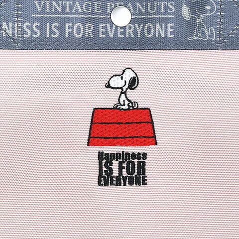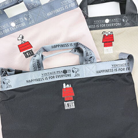 スヌーピーがドッグハウスの上でくつろぐデザインが可愛いショルダーバッグです。トートバッグ&ショルダーバッグの2way仕様!A4サイズが収納可能な「ミディアム」。口元はドットボタンでサッと開閉。ざっくりハリのあるポリエステル素材が、カジュアルスタイルにぴったり♪ショルダーベルトは長さ調節が可能なので手持ち肩掛け、斜め掛け、シーンに応じて使い分けができちゃいます☆背面のルーポケットには、スマホなど頻繁に出し入れするアイテムを入れておくと便利です♪