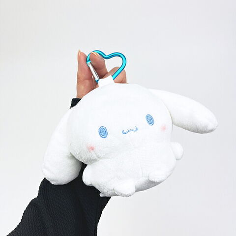 シナモロールのちょっとした小物を入れるぬいぐるみポーチです。サンリオの大人気まるもっちシリーズ♪ハートのカラビナが可愛すぎます☆いつもとちょっと違う表情にも注目です♪