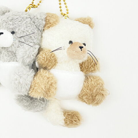 にゃんすけとにゃんたろのにこぬいキーホルダーです♪ボールチェーンマスコットなのでカバンや鍵に付けやすい♪マスコット同士が磁石でくっつくのがとってもカワイイ♪お友達や家族とお揃いで付けよう!