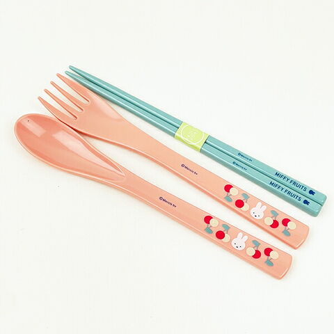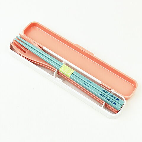 ミッフィー×フルーツデザインが可愛い箸&スプーン&フォークの便利なトリオセットです。重ねてしまえるのでコンパクトで持ち運びも便利☆カチャカチャ音が鳴らないシリコーンクッション付きのケースが嬉しいポイント♪ぜひランチタイムのお供にいかがですか?食洗機使用可◎【サイズ:18cm】