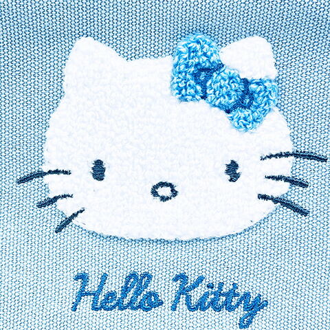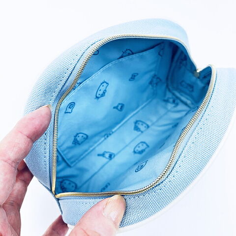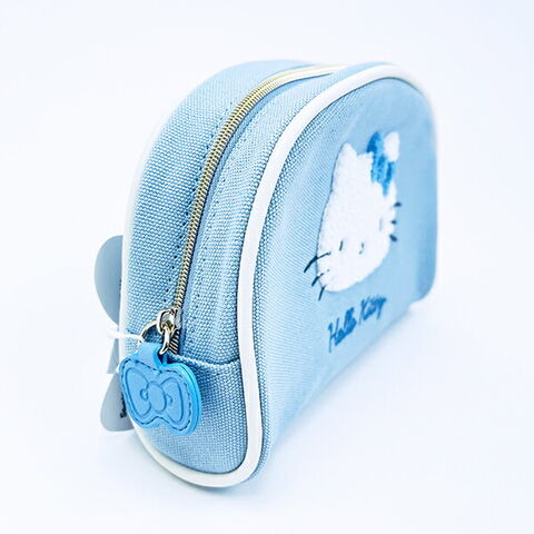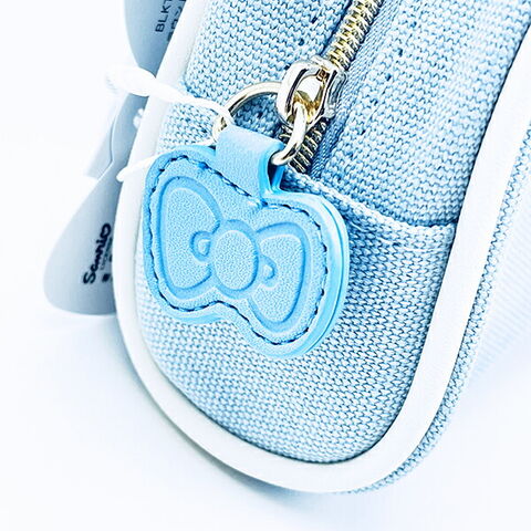涼しげなカラーデザインで小物を入れたりコスメを入れたりできるハローキティのラウンドポーチです。名前は刺?デザインでフェイスはもこもこデザイン◎文具を入れてもgood!