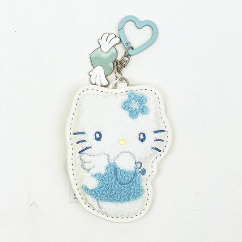 もこもこなさがら刺繍で描かれたエンジェルキティがラブリー★パステルカラーでハート型のかわいいカラビナとチャーム付なのでバッグやリュックに付けるのもぴったり♪