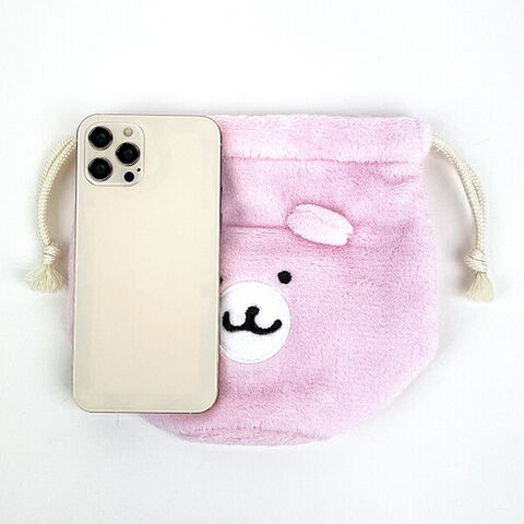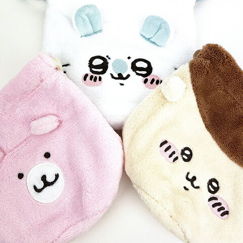 ちいかわが持っているくまさんポシェットのふわふわ素材のフェイス巾着です。これを持っているだけでちいかわとお揃いに♪