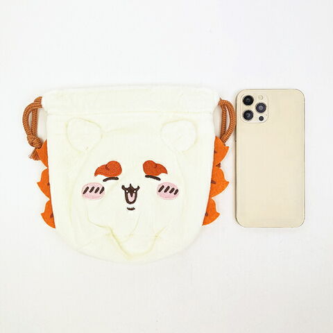 ちいかわ(シーサー)のふわふわ素材のフェイス巾着です。マチ付きなので小物の持ち運びにも便利☆内生地まで可愛いなんてずるい~!!愛らしい表情がとてもキュートな巾着です♪