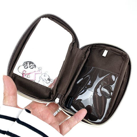 表がクリア素材の万能ポーチです♪お気に入りの小物やグッズ入れて推し活グッズとしてお使いいただけます☆彡内側に2つのクリアポケットと上部にキーホルダー等が付けられるリボンが付いてます♪大きく開けられるU字ファスナーです♪