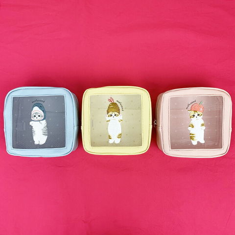 モフサンド mofusand もぎたてにゃん ボックスポーチ (ピンク) メッシュシリーズ 小物入れ