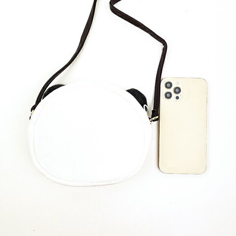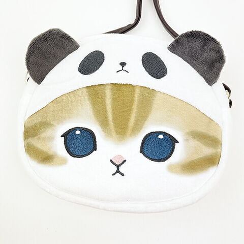 ふんわり柔らかな生地でできたパンダにゃんのお顔がかわいいポシェット。肩紐は長さ最大60センチで、調節可能です◎