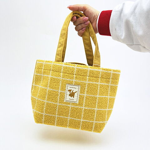 くすみカラーの「もこもこなサガラ」と「コーデュロイ」素材がオシャレなピカチュウのミニトートバックです。シンプルなデザインがgood☆ランチバックとしてはもちろん、ちょっとしたお買い物バックとしても使えるサイズ感です♪