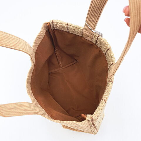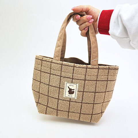 くすみカラーの「もこもこなサガラ」と「コーデュロイ」素材がオシャレなイーブイのミニトートバックです。シンプルなデザインがgood☆ランチバックとしてはもちろん、ちょっとしたお買い物バックとしても使えるサイズ感です♪