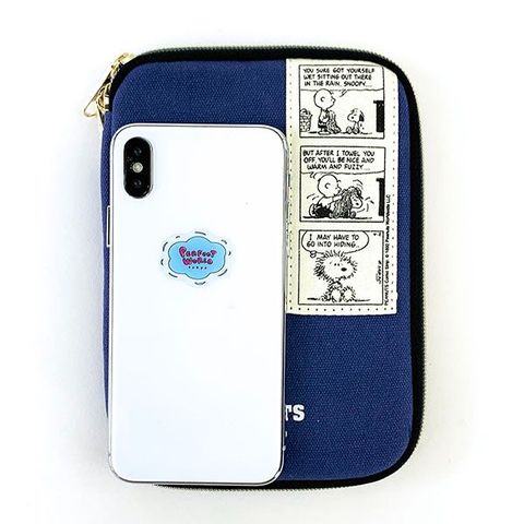 スヌーピーのミニマルチケースです。充電器やコードをコンパクトに収納。持ち歩きにも便利です。
