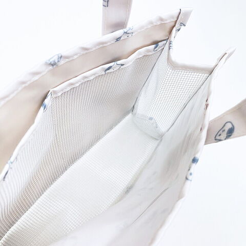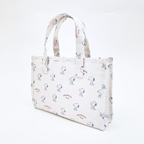 内側はPVC素材なので濡れても安心なスヌーピーのスパバッグです。サイドや底、内ポケットはメッシュ素材なので通気性が良く乾きやすい◎温泉やプール、スポーツジムなど色んなシーンでお使いいただけます♪マチ付きでたっぷり収納可能◎使わない時はたたんでコンパクトに♪