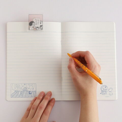 ドラえもんのA5ノートです。ドラえもんたちが繰り広げるゆかいな日常を描いたいつものドラえもんがテーマ☆オノマトペの描き文字のチョイスやカラーリングにこだわっていて大人にこそ使っていただきたいシリーズです♪コミックの1コマが表紙に…!思わずくすっとするコマデザインなのでドラえもん好きにはたまりません♪中柄もそれぞれ違うドラえもんの表現が楽しめます!ぜひ同シリーズでお好きなアイテムを見つけてみてください☆彡