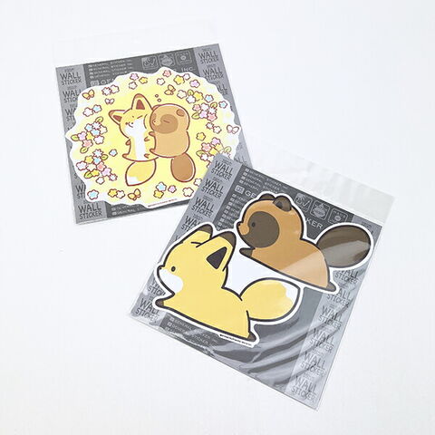 タヌキとキツネ お散歩 ビッグウォールステッカー 日本製