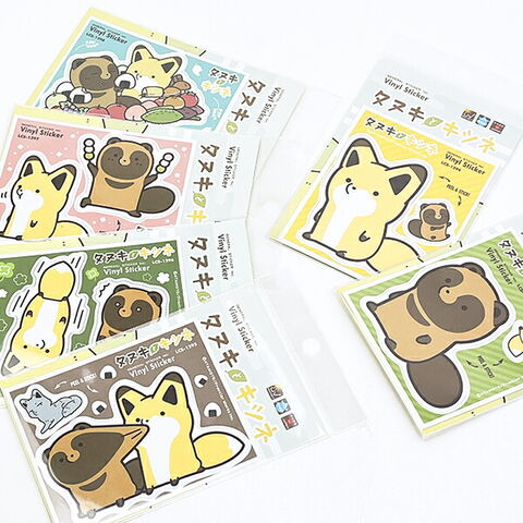SNSで人気のコミック「タヌキとキツネ」シートステッカーです。ちょっぴりぬけてるタヌキと、ちょっぴりいじわるなキツネ。そんな仲良し2匹がとっても可愛いステッカーになりました!シートタイプのステッカーはミニステッカーがついてお得!お山に暮らすなかまたちもどこかにいるかも!?見ているだけで癒されるタヌキツグッズでこころもほっこり♪こちらの商品は耐水、耐光性のあるステッカーです。屋外はもちろん、スマホ、PC、タブレット、スーツケースノートや手帳など様々なところに貼ってお楽しみ下さい♪