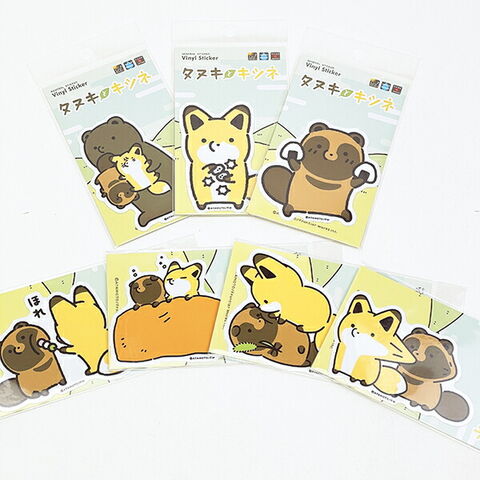 タヌキとキツネ なかよし ダイカットビニールステッカー 日本製
