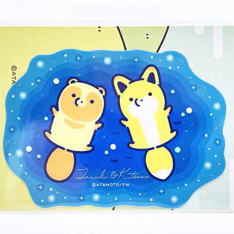 SNSで人気のコミック「タヌキとキツネ」クリアステッカーです。ちょっぴりぬけてるタヌキと、ちょっぴりいじわるなキツネ。そんな仲良し2匹がとっても可愛いステッカーになりました!シートタイプのステッカーはミニステッカーがついてお得!お山に暮らすなかまたちもどこかにいるかも!?見ているだけで癒されるタヌキツグッズでこころもほっこり♪こちらの商品は耐水、耐光性のあるステッカーです。屋外はもちろん、スマホ、PC、タブレット、スーツケースノートや手帳など様々なところに貼ってお楽しみ下さい♪