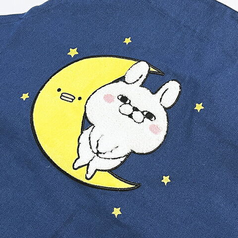 ヨッシースタンプでお馴染みのうさぎさんが三日月に座っている姿が可愛いエプロンです。男女兼用なのでご家族で使えて嬉しい☆ポケットのプリントが可愛くておすすめ♪ヨッシースタンプファンにはたまりません☆ぜひヨッシースタンプのスリッパと合わせてお使いください♪【サイズ:M~L】着丈:92cm、身幅:54cm