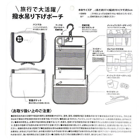 コンパクトなのに広げるととっても大容量◎ポケットも充実していて細かく収納を分けることもできるので、化粧品や洗面用具が入れやすく、ホテルの狭いバスルームでもフックで引っ掛けて使える優れもの♪