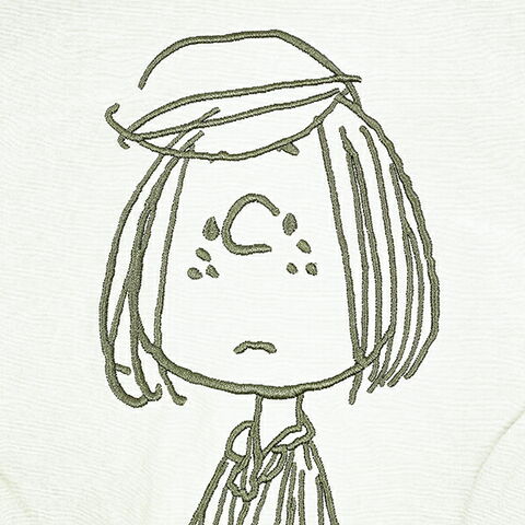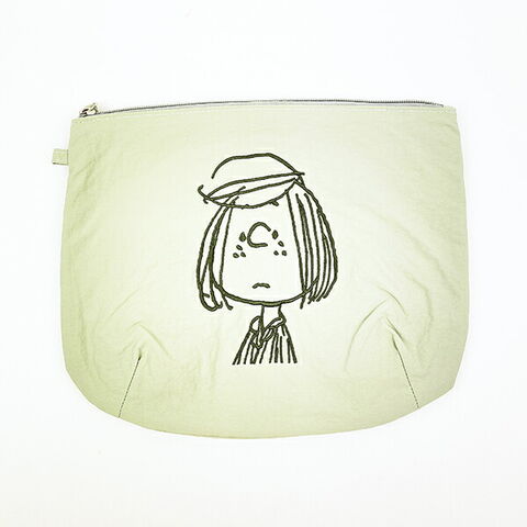 ピーナッツの仲間たちの刺繍デザインがシンプルだけどおしゃれなポーチ。大きめサイズでたっぷり入ります♪こちらはペパーミントパティデザインです。