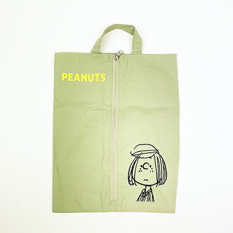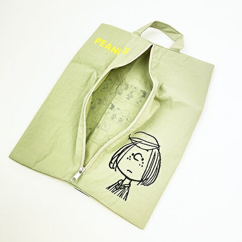 スヌーピー ワイドトラベルポーチ 収納ポーチ シューズ入れ グリーン PEANUTS SNOOPY