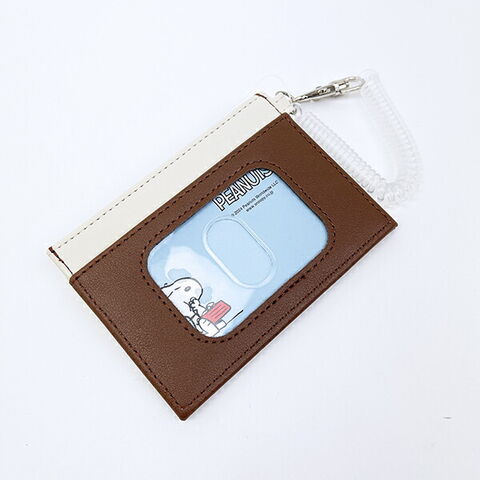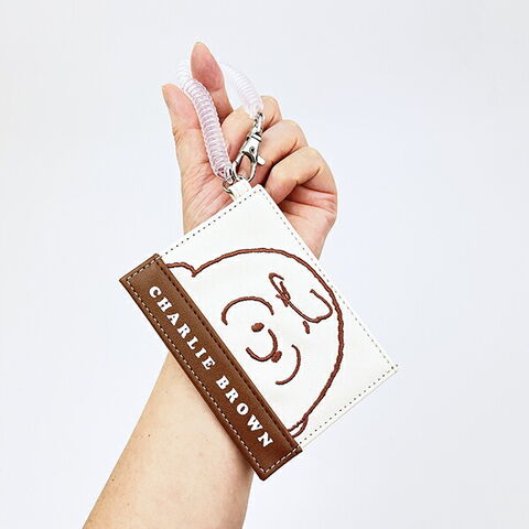 スヌーピーのチャーリー・ブラウンデザインのパスケースです♪刺しゅうが大人っぽい♪スプリングコイル付きなのでバッグに付けてサッと取り出せる☆彡