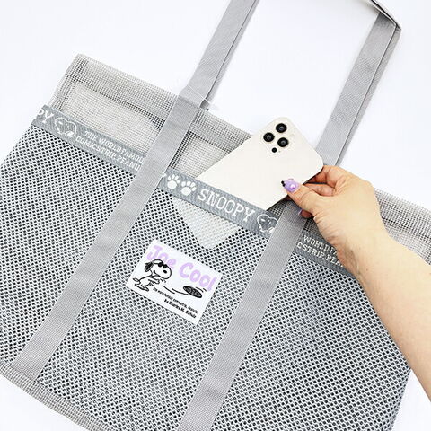 スヌーピー ラバメッシュ ワイドトートバッグ (グレー) SNOOPY