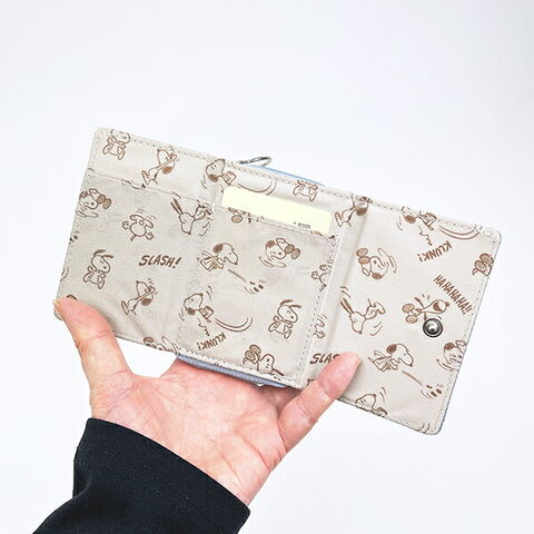 ウッドストックのコンパクト三つ折り財布です♪アップリケがとってもキュート♪お札と小銭入れが別々で使いやすい♪ファスナー開閉の小銭入れ部分はガバっと開いて取り出しやすく、三つ折りでコンパクトにまとまるお財布♪内側はお札入れとカードポケットつきで、小さくてもしっかり収納できますよ☆彡