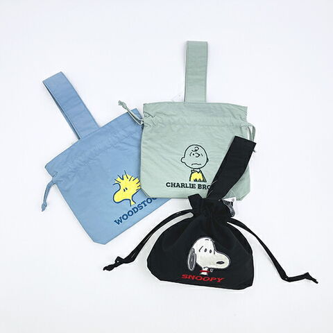 スヌーピー ウッドストック 巾着バッグ アップリケ刺繍 ランチ SNOOPY