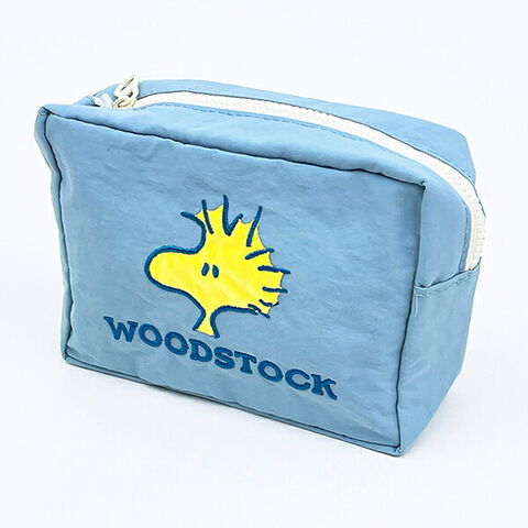 ウッドストックのスクエアポーチです。アップリケ刺繍が可愛い♪メイク用品や小物を入れるのにぴったりなサイズ感♪ぜひ同シリーズのバッグなどと一緒に揃えてみてください☆彡