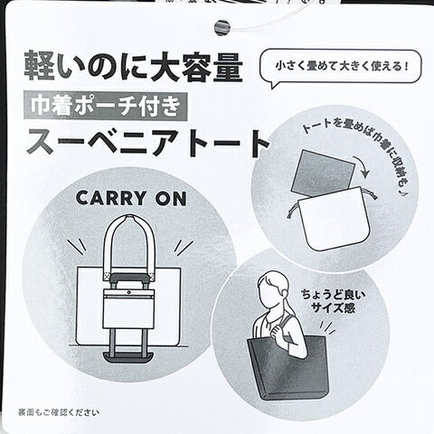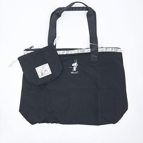 スヌーピー 巾着付きスーベニアトートバッグ (ブラック) トラベル SNOOPY